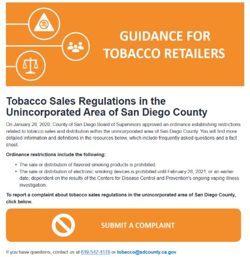 Department of Environmental Health Food Publications and Guidance. San Diego County Health Department Contact Information. Click on any entry for more information.